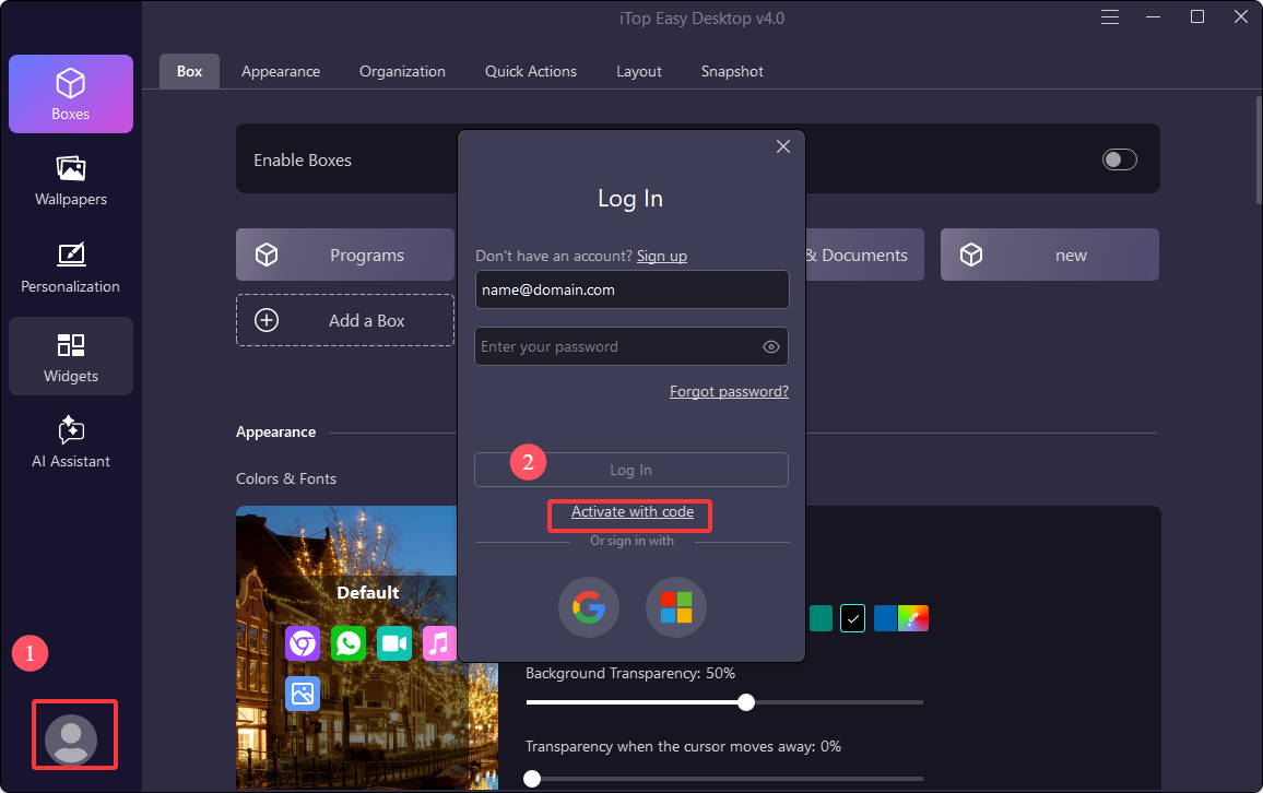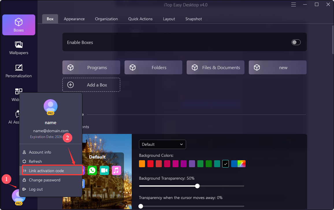 If you get a code,. you can follow the step below to upgrade your iTop Easy Desktop to Pro.