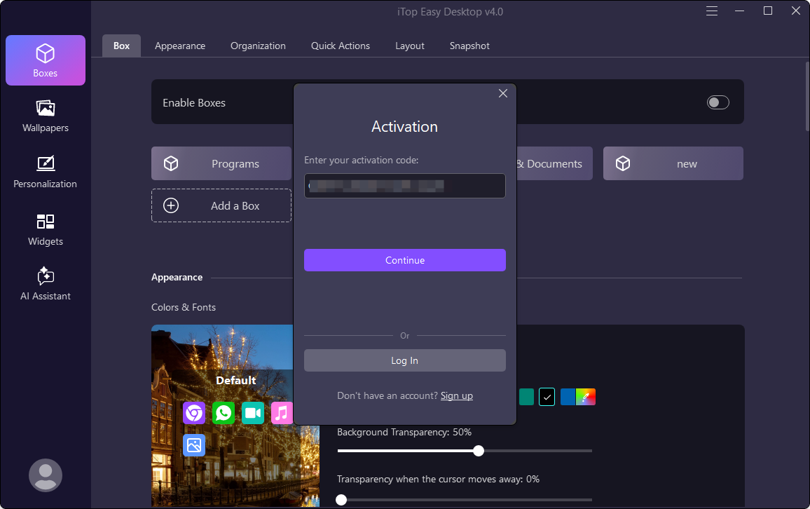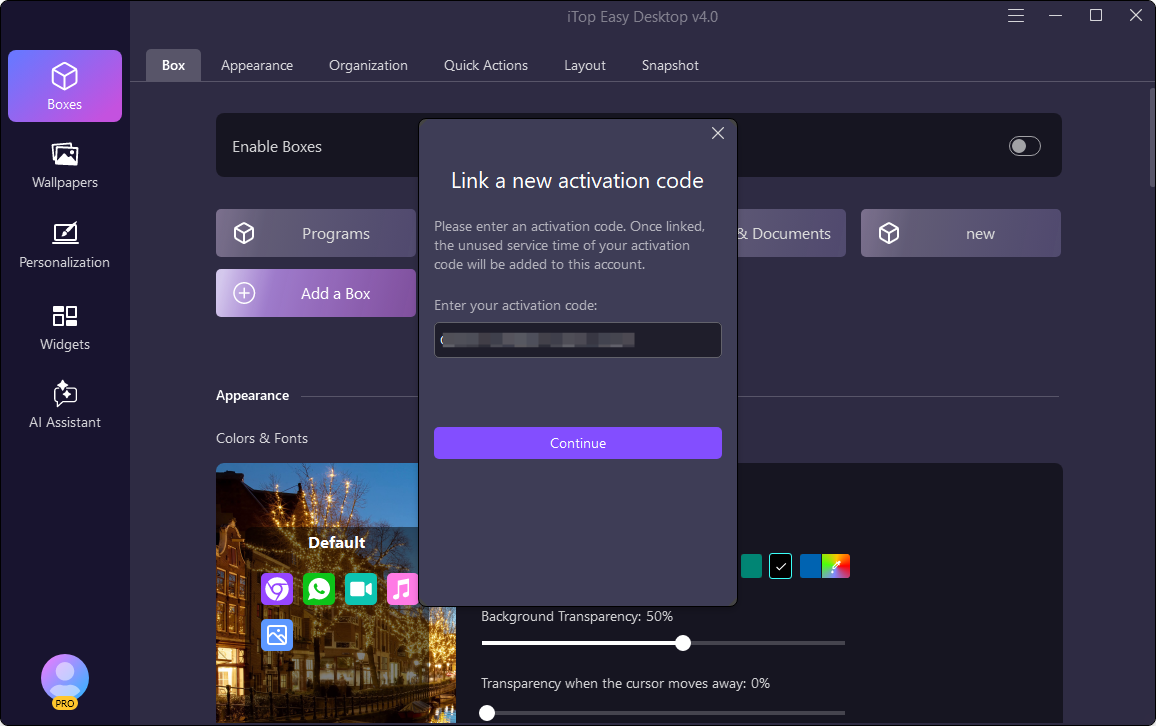 If you haven’t logged in, you can still upgrade iTop Easy Desktop to Pro directly with an activation code.