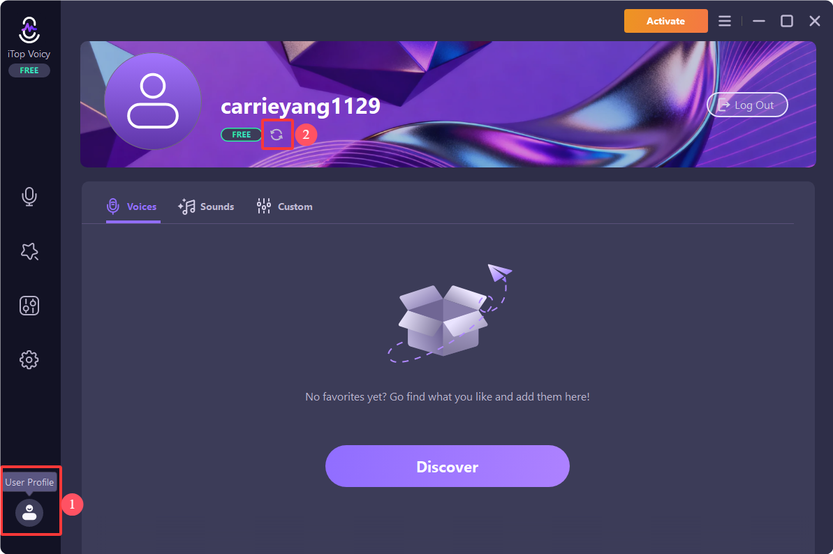 2. Open iTop Easy Desktop, and click the User Profile icon at the bottom left corner.